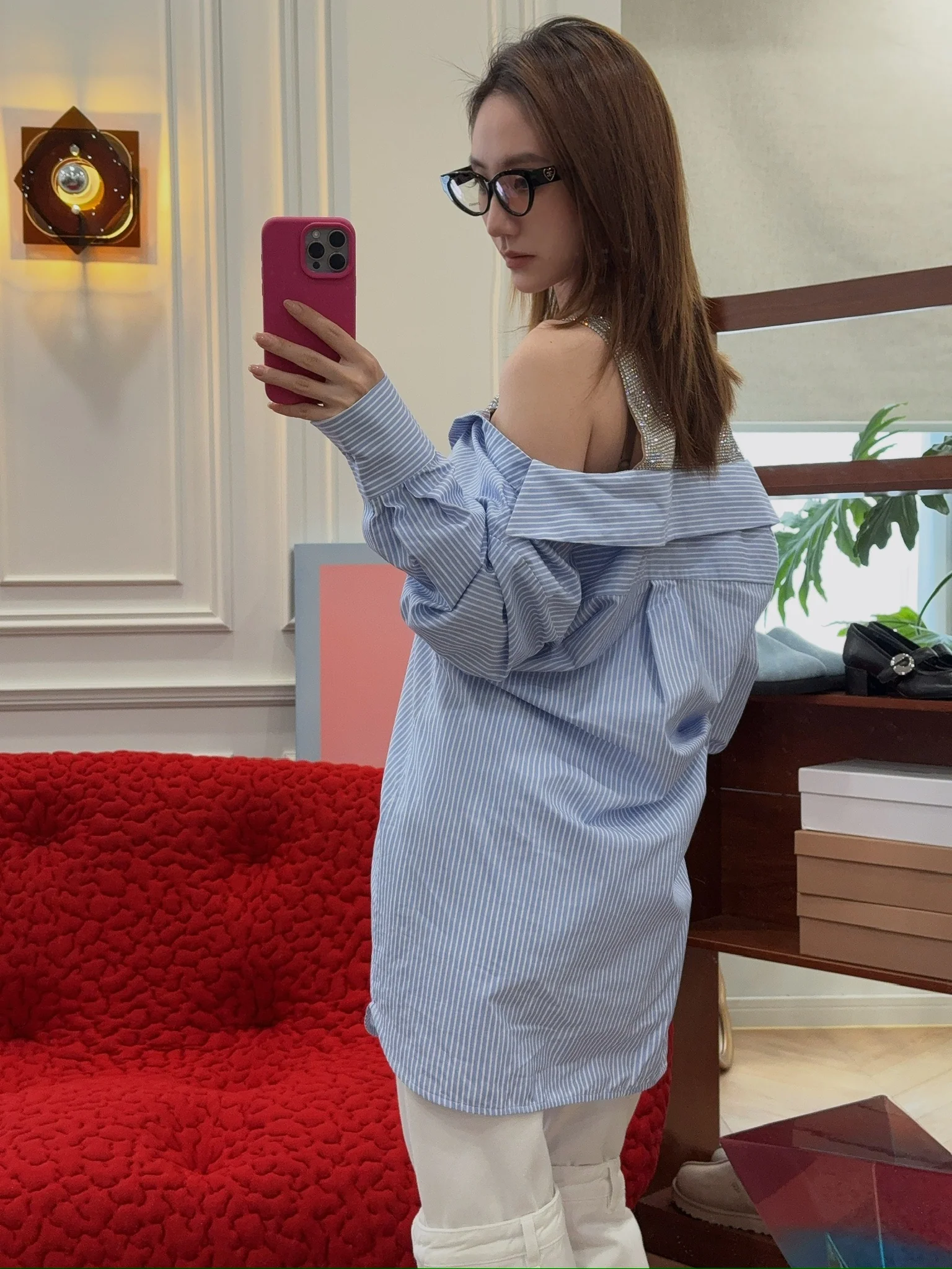 rhinestone-embellished shirtdress